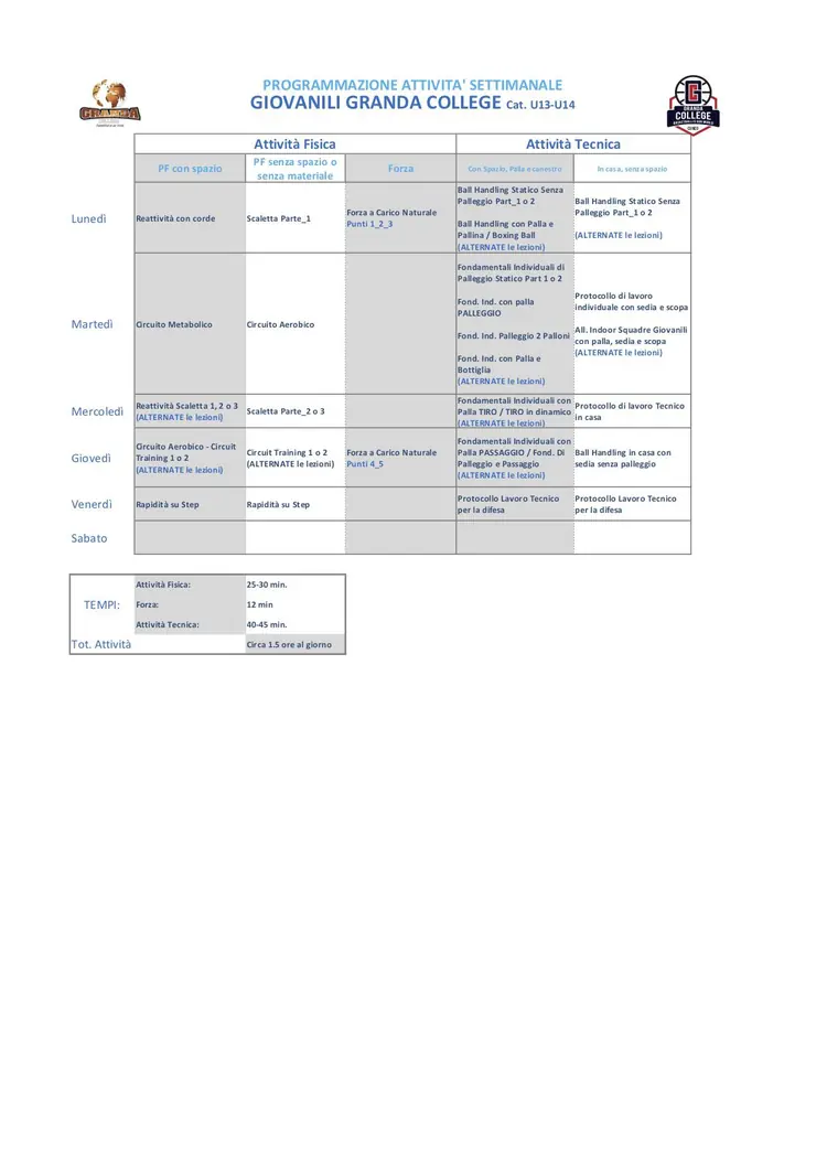 🏀 PROGRAMMAZIONE ATTIVITA’ FISICHE E TECNICHE 🏀